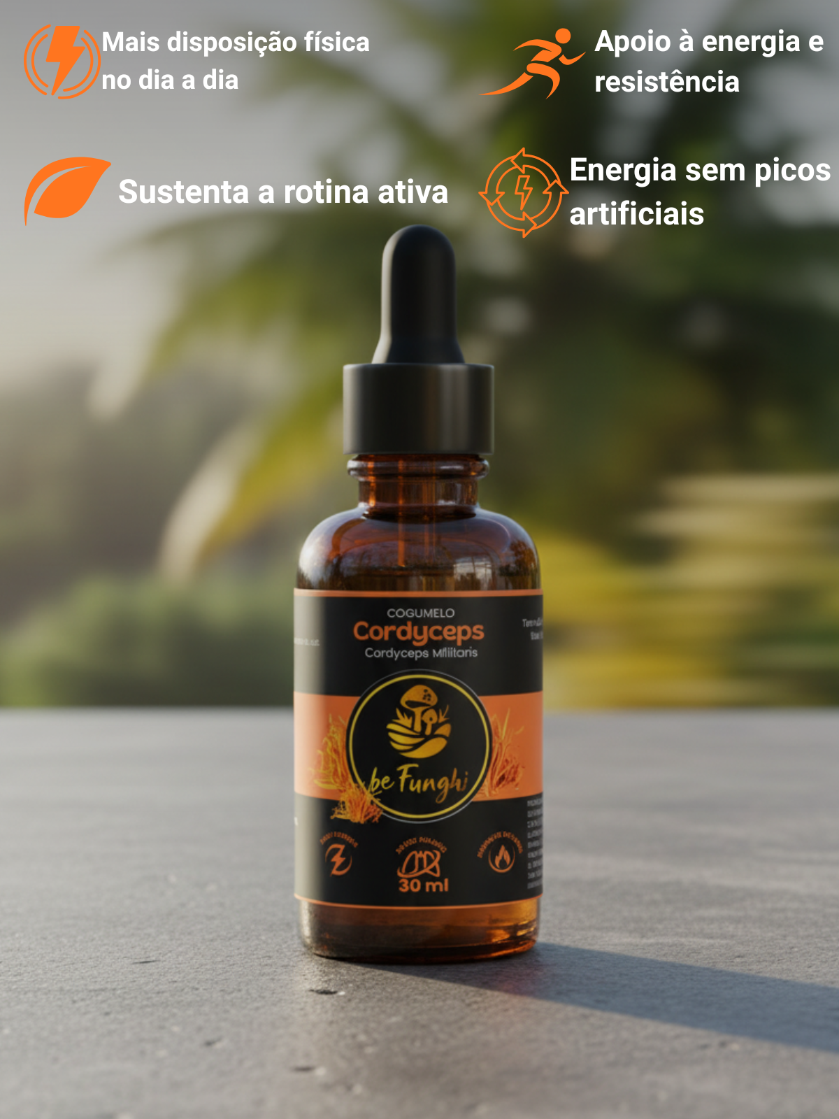 O Cordyceps 30ml foi desenvolvido para quem busca mais disposição física e resistência para a rotina, sem recorrer a estimulantes artificiais ou picos de energia.